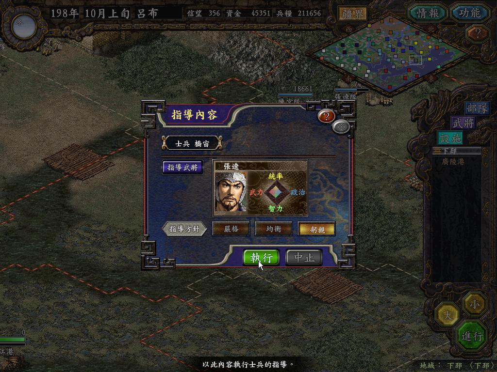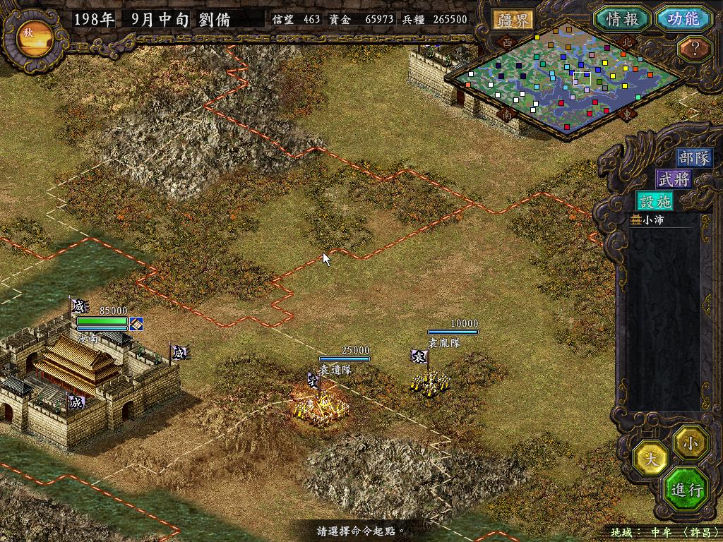 开始只选吕布,从198年9月上旬开始,就把刘备、曹操势力变为俺来操控,
