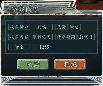 这个月的11号,刘备又派猪哥来搞停战,竟然是一年!于是我想试试猪哥的隐藏特技【论客】是否有用,就点拒绝。没想到,没用,没进入论战,我的千多块钱没了...