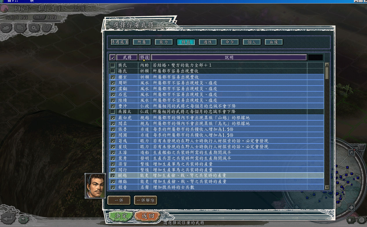 经过耐心的等待,终于登庸了第一个弩兵S的武将