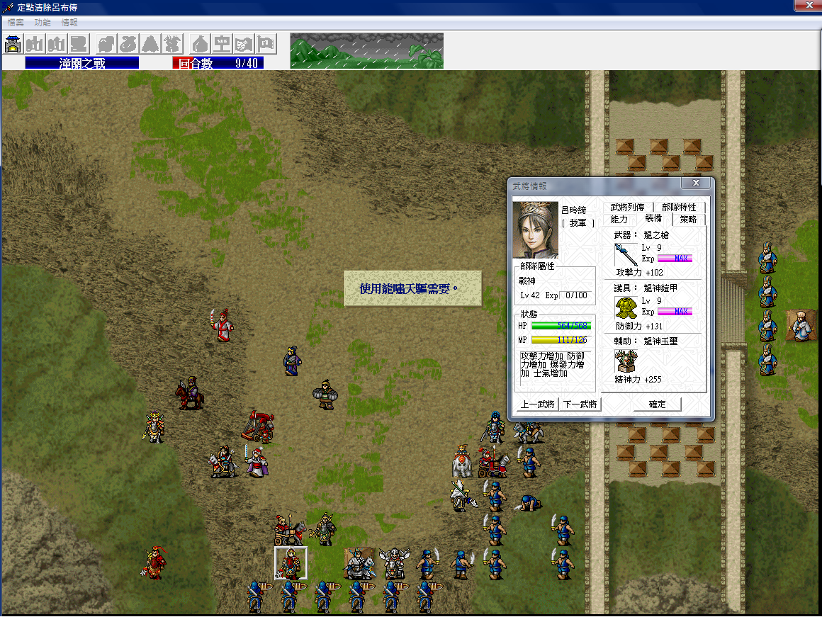 請問各位大大呂玲綺怎樣用龍嘯天驅...請看圖...按攻略所說用了這招需要用的裝也不能使用