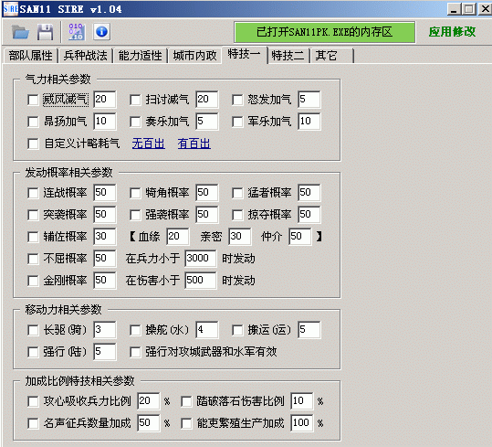 3. 加强火计成功率与智力的影响,本来智力1对空地放火成功率65% 智力100时成功率95%,比例参数=0.3,