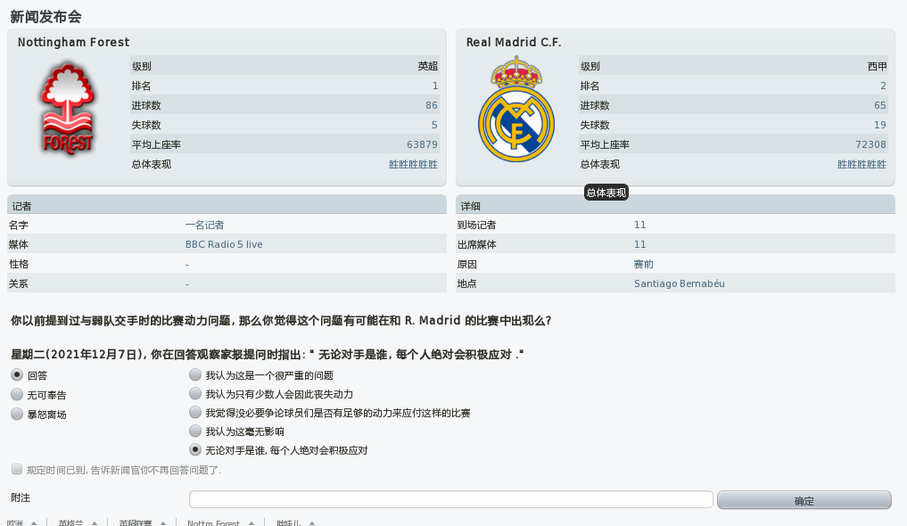 FM2010里的这位记者一定是巴萨或者马竞球迷