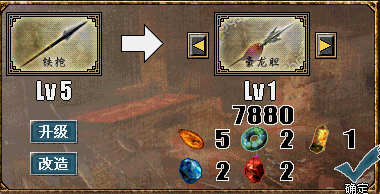 2.5版的长坂之战是拿的豪龙胆,困难级汉水之战坚持到诸葛亮出场,赵云没有败退,就会得到白银铠的图纸