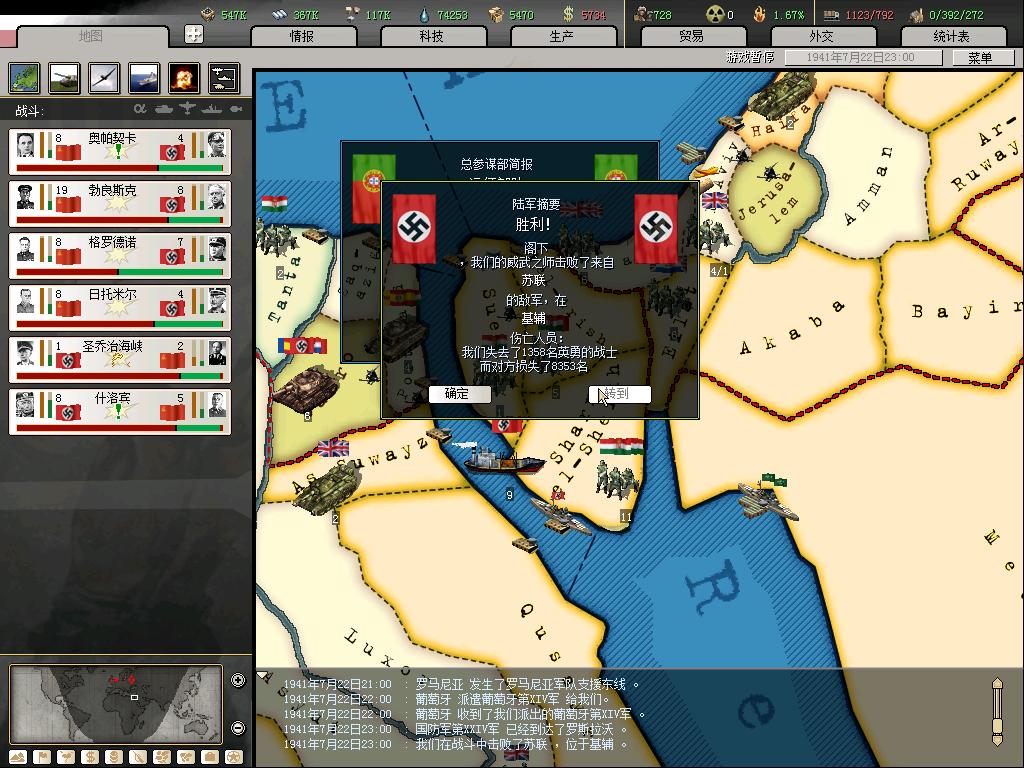 41.07.06开战21天来最大的一个饺子,一共122个师(口水),因为已经发生一整,现在苏军已经不再是纸糊的了,这个饺子可能要迟到8月才能吃完,然后再在南线包一个饺子过冬,波罗的海三国即将迎来解放,包了22个师的饺子,但是放出来的不满实在是发愁啊,时空穿越发些荷兰偏安东南亚居然有8万两硬通货的储备,帝国舰队二话不说出击,打、打、打劫