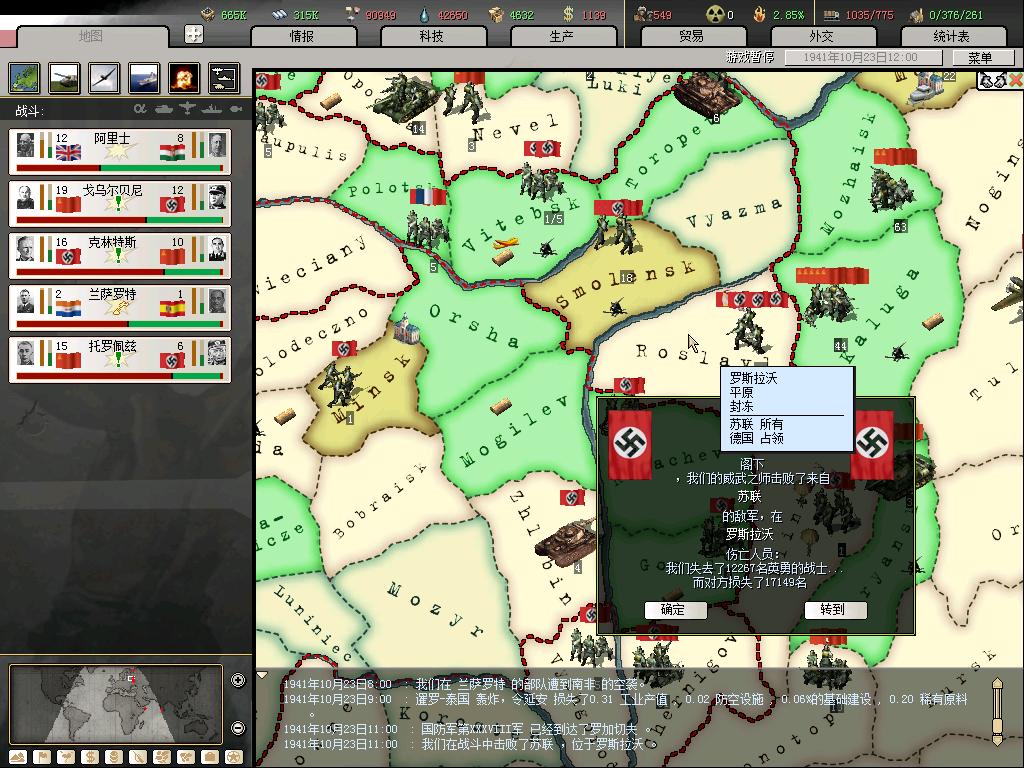 咱是41年闪击高卢之后打下非洲,直布罗陀,苏伊士放阿联的,没海狮,所以装甲多。东线相对好打点吧