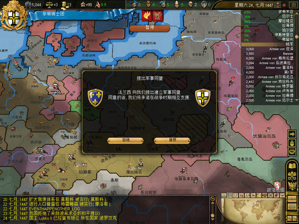 今天查了一下存档,八个幸运国家是:丹麦、奥斯曼、波希米亚(怨不得老向俺宣战)、奥地利、阿拉贡、卡斯提尔、葡萄牙、帖木儿(怨不得现在还没崩溃)