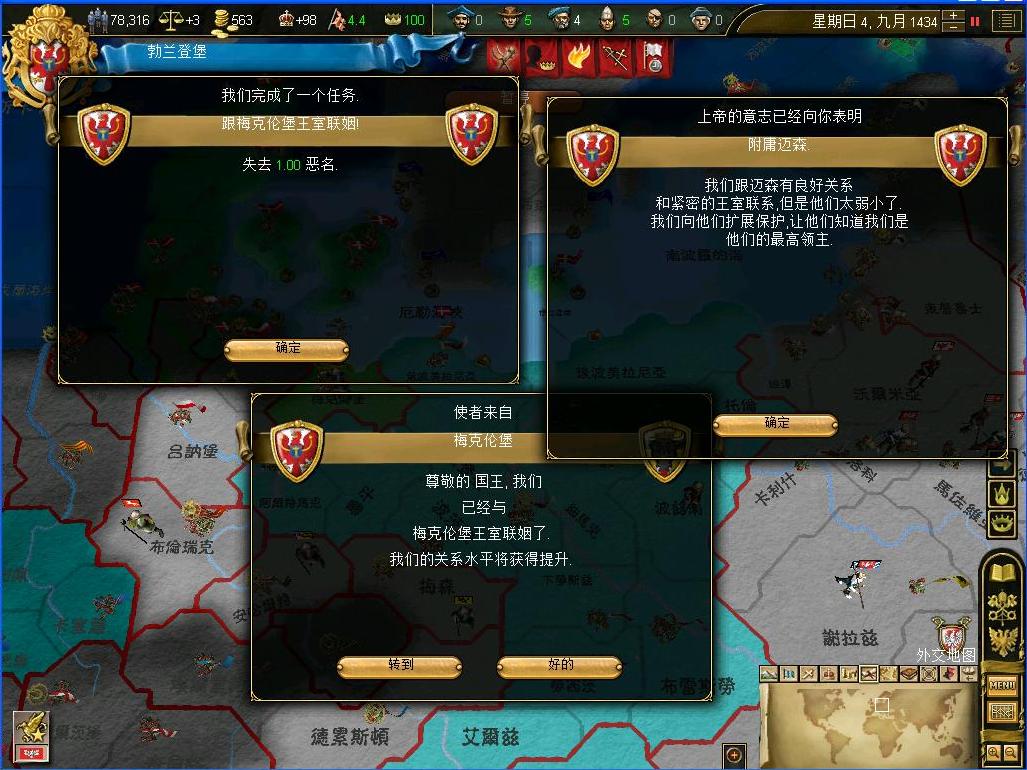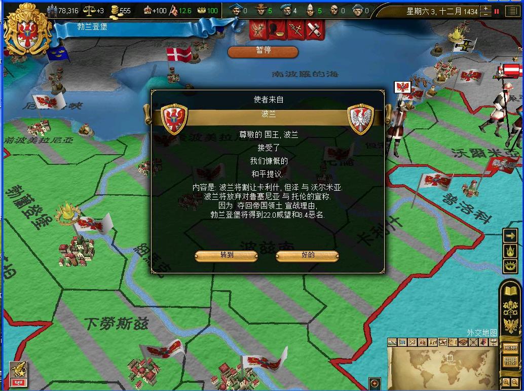 在第二军的协助下,东线的战事有了很大的改善.第一军主攻,第二军在第一军周围进行游击战消灭波兰的小规模骚扰,这样下来很亏波兰的军队所剩无几........我公国也完成了抵御波兰的任务,下一个任务是和梅克伦堡联姻......小意思....