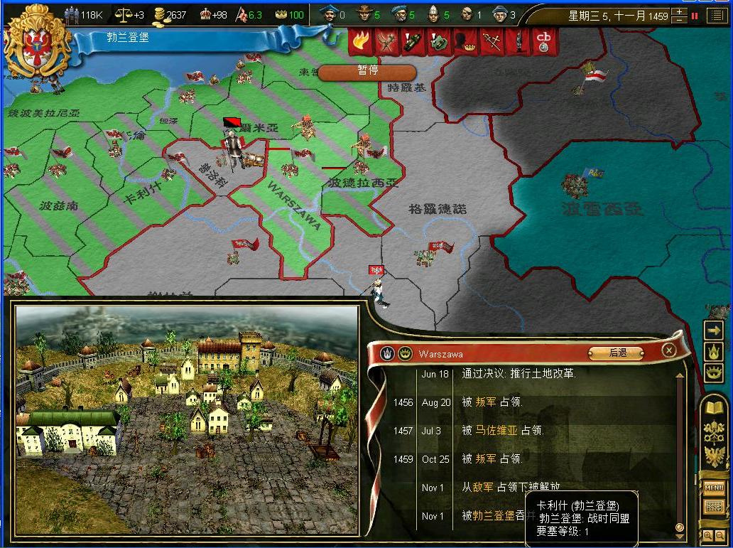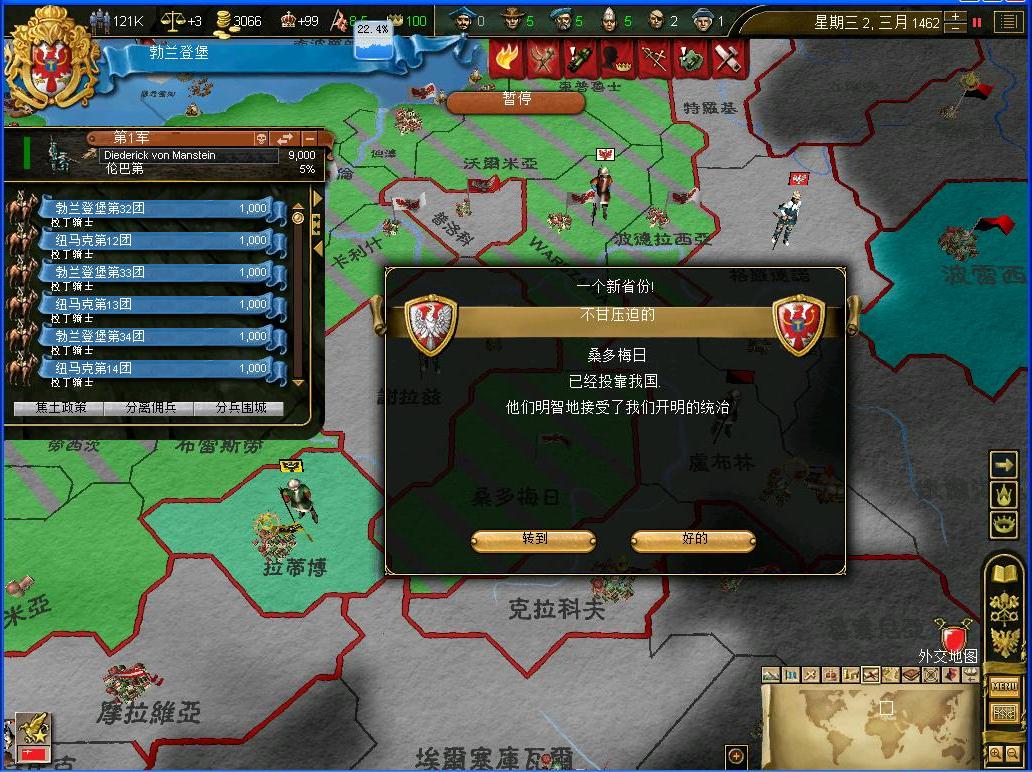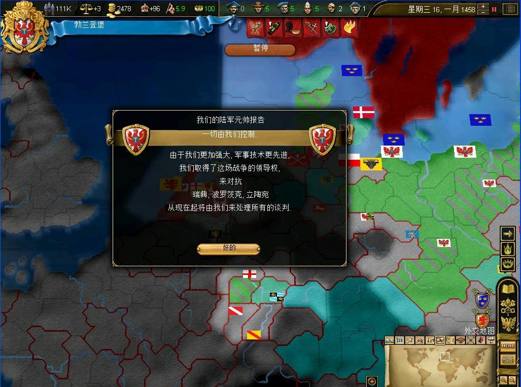 大军基本上也要修正了,在外交大臣的磋商下,公国拿下了波兰的海外省,并且让马佐维亚复国....就这样,地N次和波兰的战争结束了,这次波兰真的是大伤元气啊
