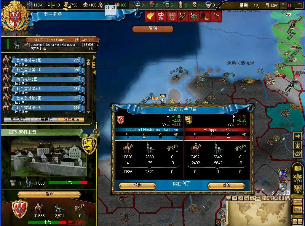 爱国军真是仗义,不仅仅给我拿下了丹麦的诸多省份,还给了我们3w7的士兵....虽然大多数都是步兵,但是也是聊胜于无啊.