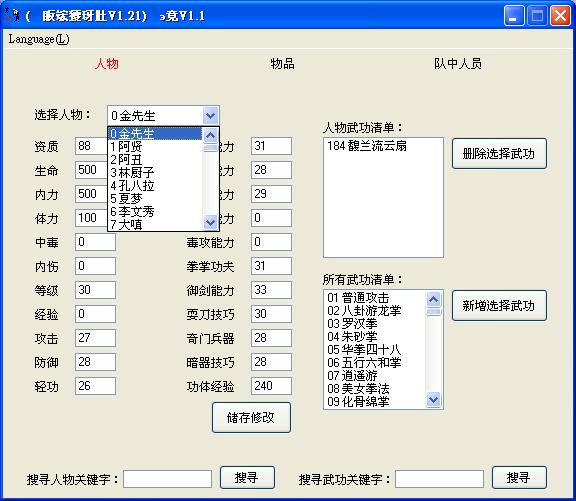 (金庸群俠前傳V1.21)修改器V1.1