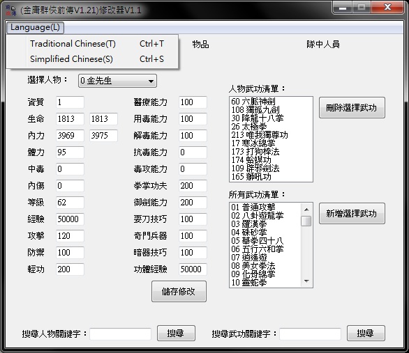 标题: (金庸群俠前傳V1.21修改器)V1.1版(於2010-6-16 17:12更新)