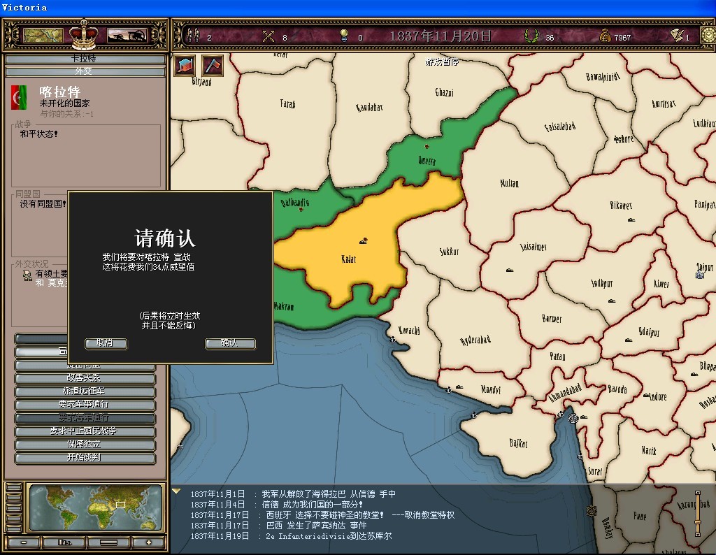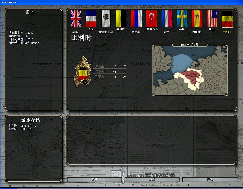 说明:把所有的国家的人口增长率从1.0改成了0.994。法国的为0.992,奥地利的为0.993。(原版这两国的增长率就相当低,原版法国为0.9936,奥地利为0.9978,大概是这么多吧)这么做的原因是使游戏到后期不至于人口膨胀,一个国家几十亿人。另外,此战报不使用恶魔提款机,南北库叶互换,割地攀科技等BUG。不过远征军偷渡法,厌战赔款等BUG还是会适当用到。