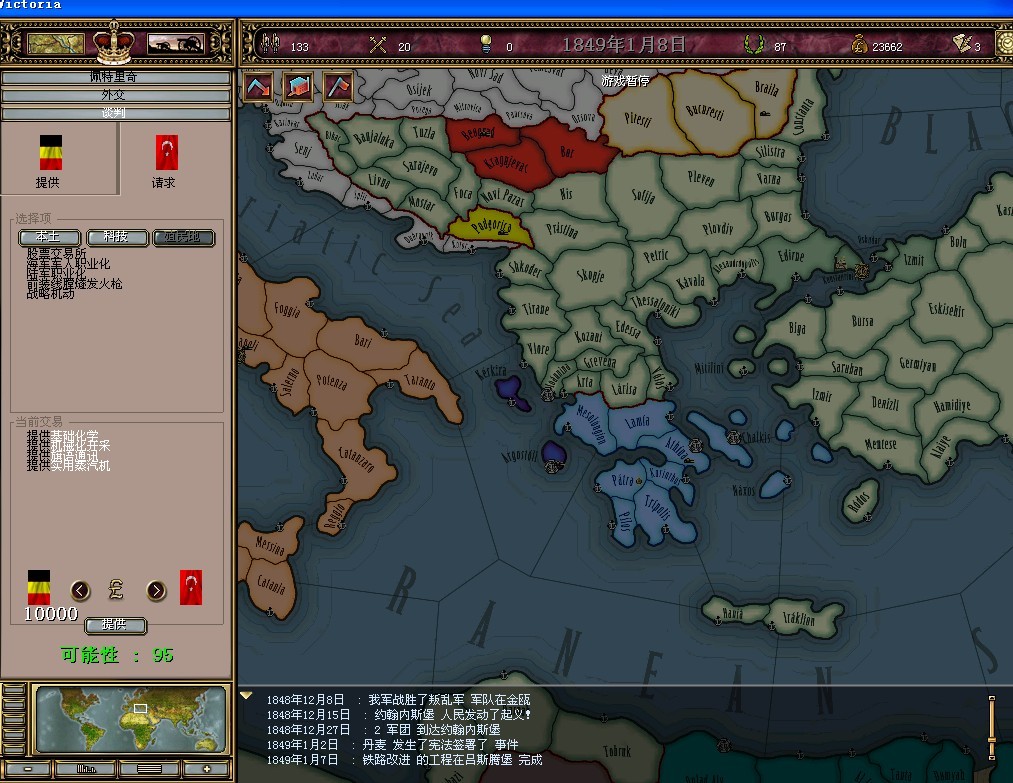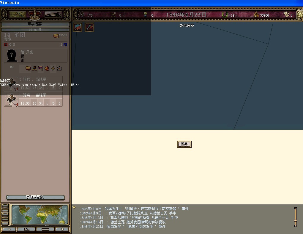 好久没玩,没怎么利用历史事件去抢声望。。。可惜。。。也没有好好利用宣战破产国赚外交点。。。哎,水平下降了