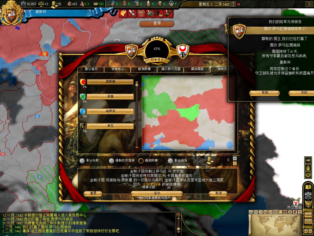 终于把厌战消掉了。准备进攻警告了我的金帐。