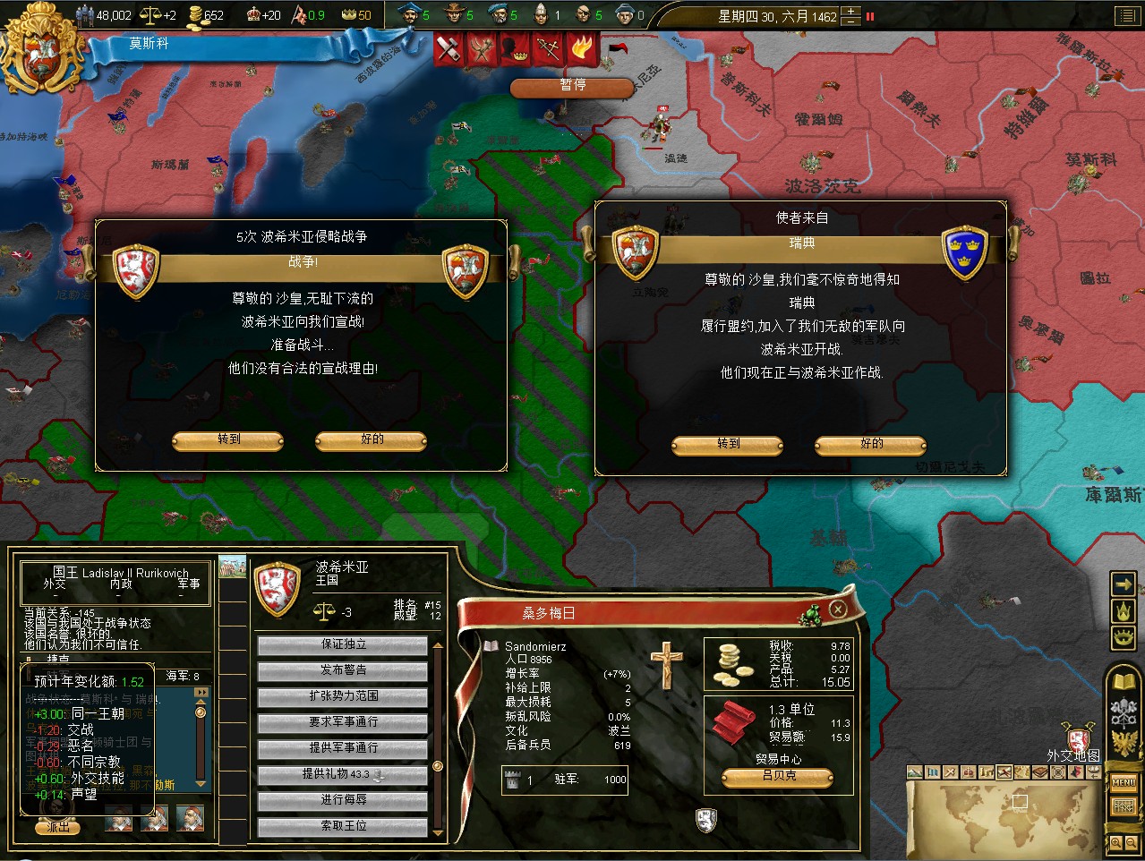 不知道波希米亚在搞什么,才6个月,一枪未放就同意谈和了。难道他意识到自己的错误,悔不当初了?