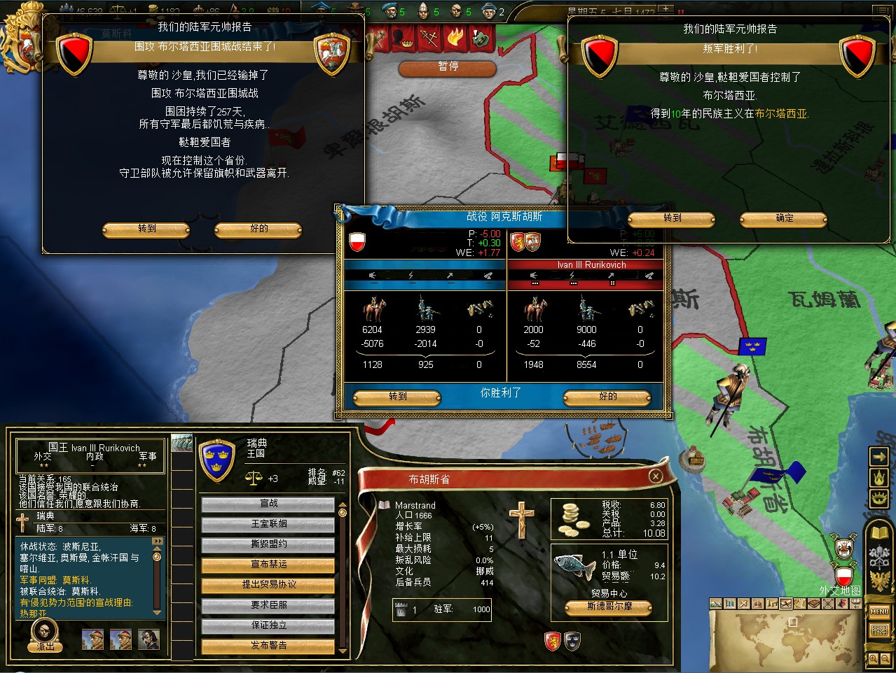 奥斯曼被瑞典的陆战队占了几块地方,乘早让他和金帐断绝关系。
