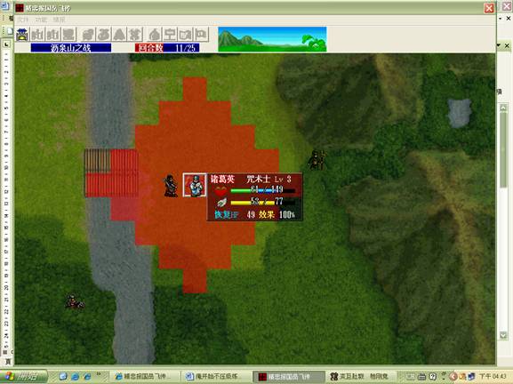 11.下回合岳从下面脱离给诸葛补血,诸葛进鹿砦补血,诸葛脱离危险期.18回合战场(图13) (图14)