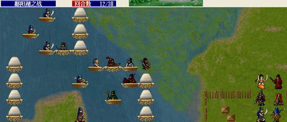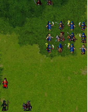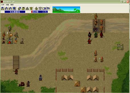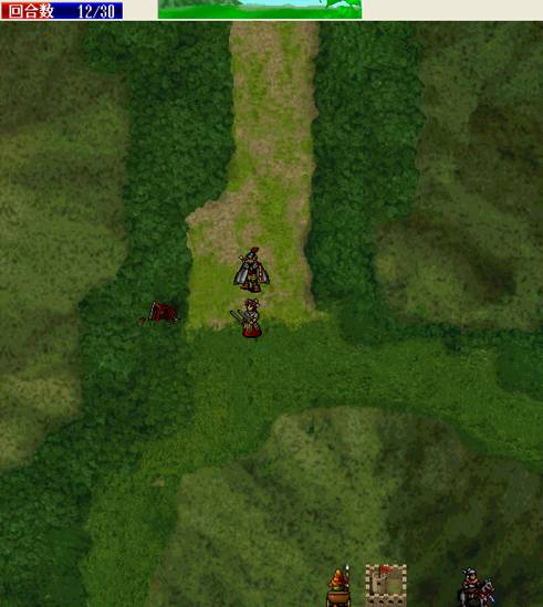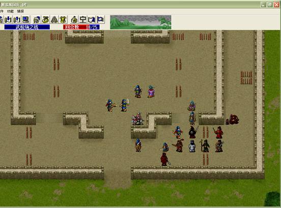 下回合,汤怀触发乌国龙出击.王佐毒死骑兵,张显打道士,施全给王贵补血.(PS:王贵不要打死步兵,打至濒死即可!这样杨BT会走到吹死他!而不是去攻击文官)下回合変成这样.(12)