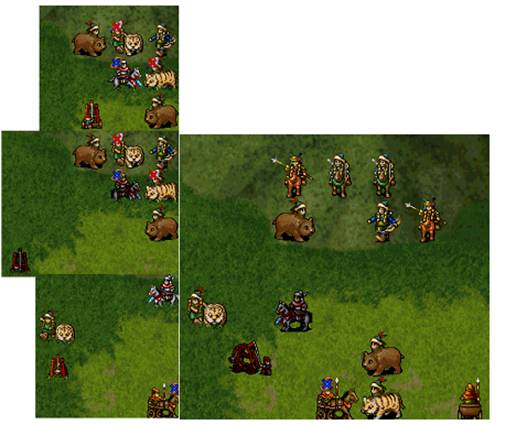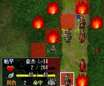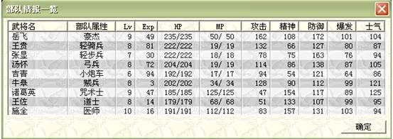 下回合:如果RP好的话,梁红玉物理全档,王横中毒扣血,物理全档,吉汤前进后,诸葛牛鼻子给三人褔星,牛走到桥头,王佐降折彦质上面骑兵的防,由折暴击击退.岳飞给折部褔星,施全给我军四人褔星.友军回合王横双击骑兵,会由侍女击退,由于王横会走出道士放毒范围,侍女顶上,所以道士会向侍女万蛊缠身,而造成侍女的低血.注意不要拿药,要让低血岳帅去吸引敌人(不用管YYP的打法真爽!). (7)