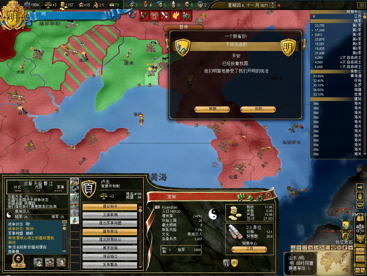 平安也投靠了我国,虽然还有济州岛,对马,郁陵三处岛屿还被异族盘踞,但是朝鲜半岛已经全境纳入我国治下。