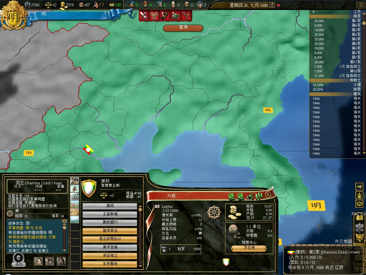 虽然建奴主动割地请降,但是这样BB太多,还是放了爱国者之后,搜刮威望吧。强迫建奴改变信仰,运气好的话,他能帮我传几块地的教。