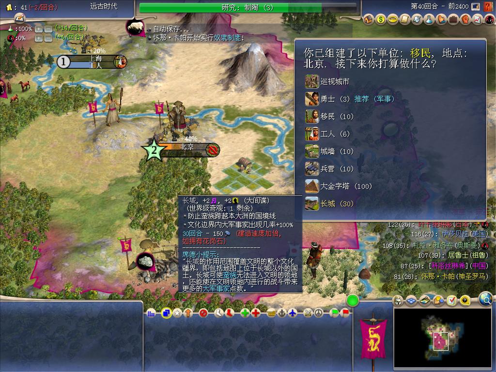 2个分城带来的经济压力有点大,而且又发现了一个小野棒子,所以提前造长城