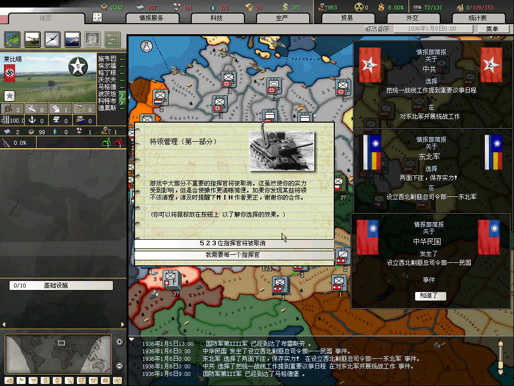 初始部队全换上后勤将领,做小幅调动,便于镇压游击