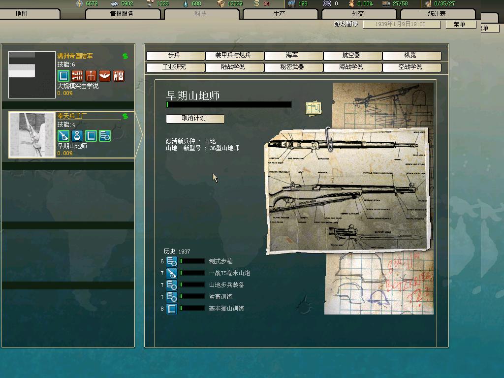 买步兵师不知道划不划算,懒得仔细计算,不过看52上高手的战报里弱国开始都是买步兵,咱也买一个。