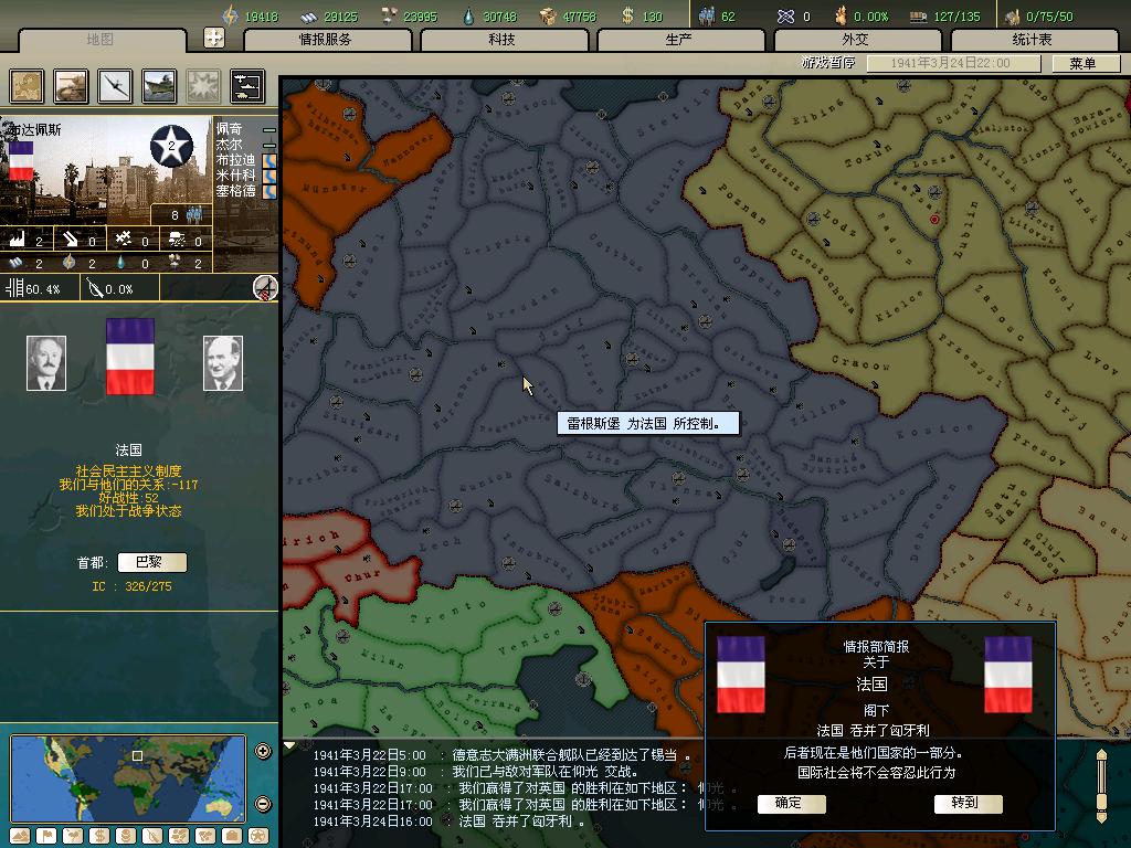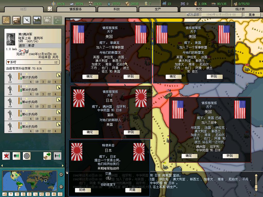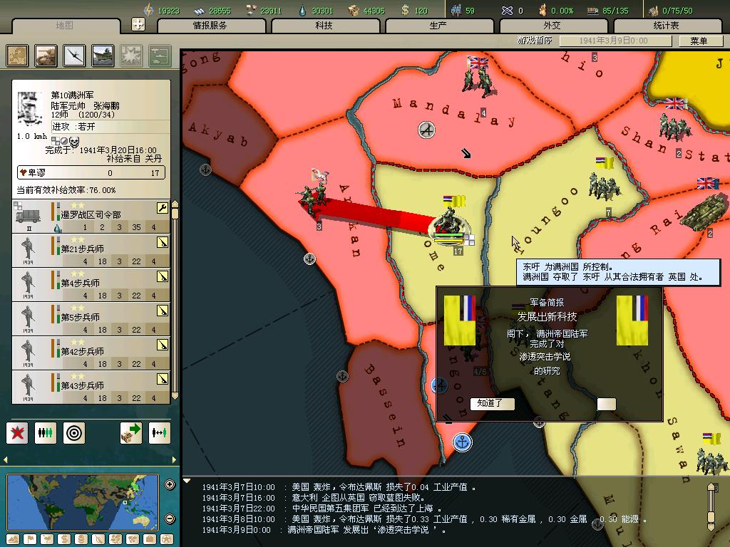 标题: DA1.3原版36满州国娱乐战报, 已更新至:1948年夏季 中日满轴心对抗英法美同盟 欧洲反攻势如破竹 攻陷华沙 吞并波兰!
