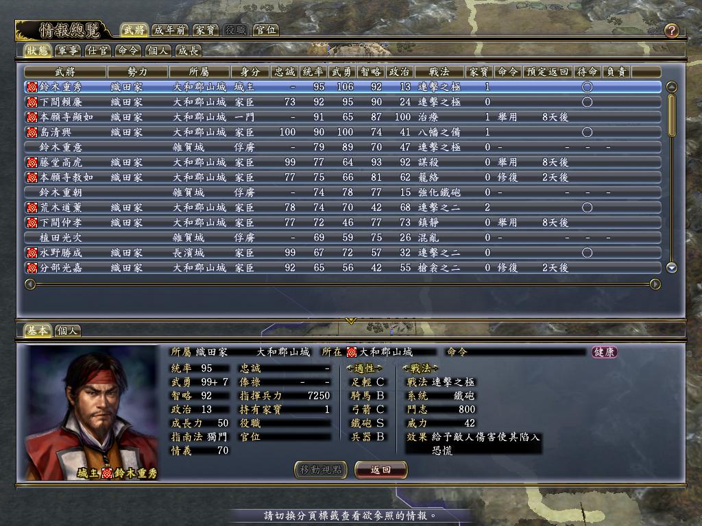 野心重燃的织田信雄,开局随便种种田,等猴子打筒井的时候破盟筒井偷之,得到岛左近、柳生忠严、天海、果心居士等一干人,然后依葫芦画瓢跟在猴子后面偷了铃木家,得到杂贺孙市和本能寺二光头。因为前面破盟筒井,没法和猴子续盟约,现在夹在猴子和乌龟两大势力之间,想灭泷川一益都抽不出手……