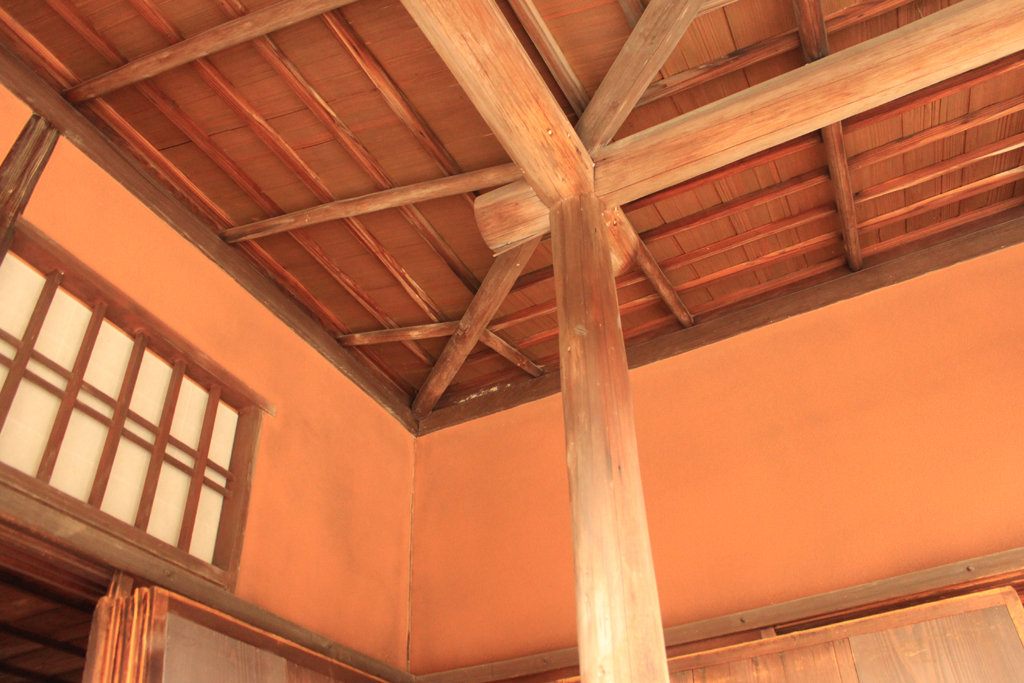 穹遂亭内部,窗户下面横木板式用来支手的,叫“御肘寄”。