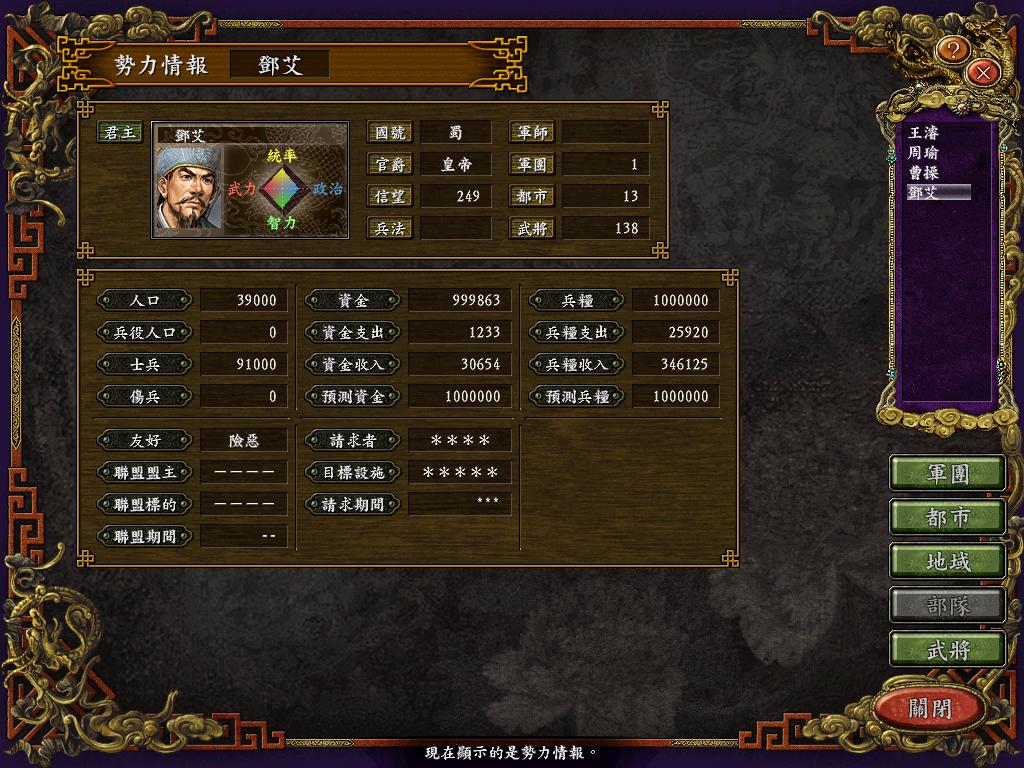 一个完全按自己意志打造的三国(四国),就这样浮现在眼前,还是是有一定的成就感的。