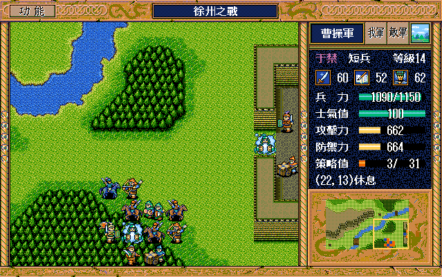 採用GB4,隨機數、天氣自選、兵力,士氣恢復最小、攻擊性,輔助性策略自選、反擊自選