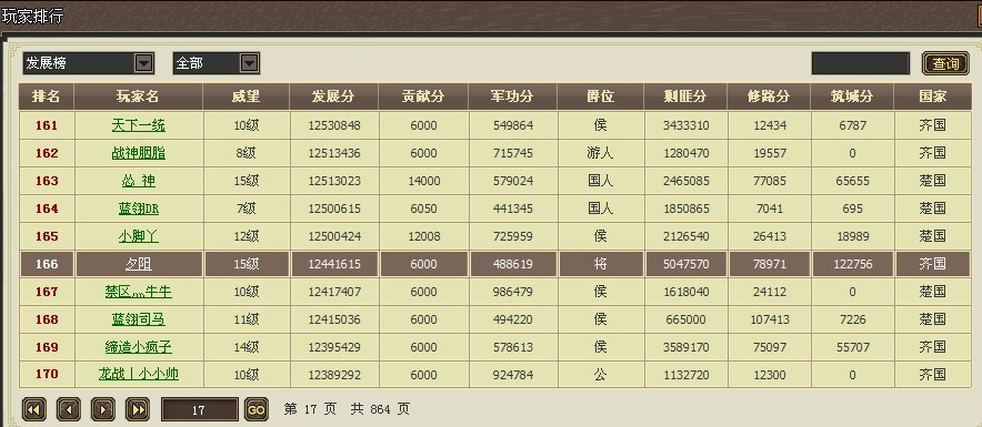 » 82区封神军团最终排名(前十页)