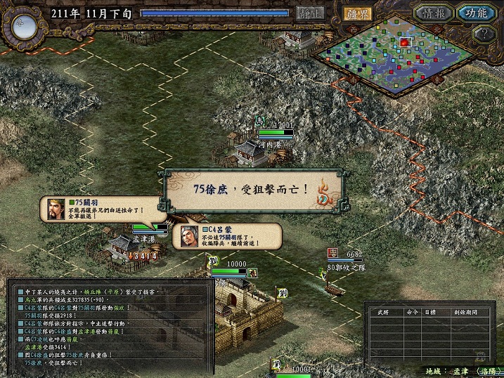 正忙碌着,4月开春了,曹丞相的大军又来了,张辽于禁也就罢了,司马懿也来了,咦,这家伙这么快已经出场了吗,再看看,郝昭都出兵了,天啊,他不是20年后跟诸葛亮对峙的人吗,怎么现在也已经是大将了,我晕。赶快赶快,再从襄平回救乌丸。虽然乌丸城有连弩兵法,但也禁不住司马懿他们的混乱攻势。一会儿“你们的粮仓已经没米了”,一会儿“投靠我军,分田分地”。乌丸城内诸将有心无力,又被曹操华丽的推倒了。。。