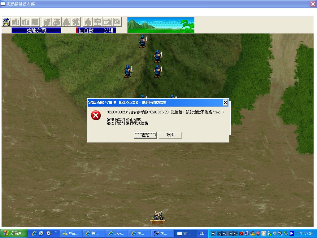 我玩<定點清除-呂布傳>五丈原之戰 玩到第二回合 觸發甘寧的對話事件後 當敵方投石車退場 陸遜要說話之時