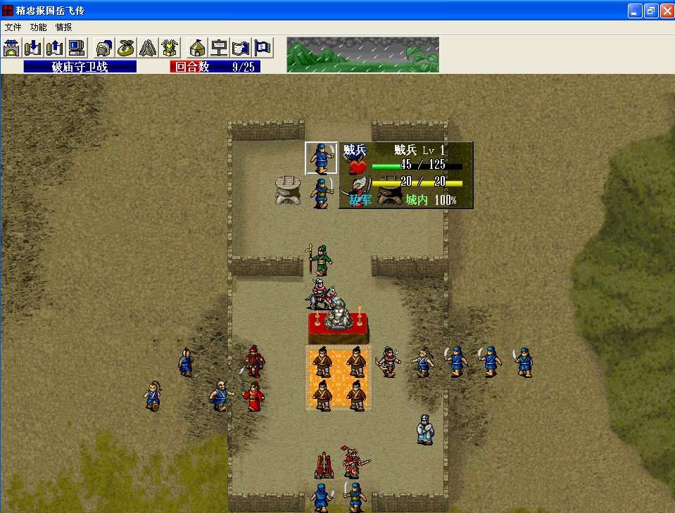 以前中出毅炮曾经简单难度4EXP过关,参考了他的帖子后发现行不通--他的方法主要是利用了李琴在庙内民居处被系统误认为农民,而普通以上的难度只要一个农民撤退就失败了,所以还得另辟蹊跷。额……两年没玩了,有点小激动,多话了