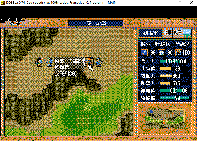 2.简雍的士气需要降到多少?似乎没必要降到0点,这个有时间仔细分析参照周瑜的全补丁泰山攻略。确定的事:简雍前期用一次假情报,第27回合灭李明,28回合用弓弩,之后12个回合激励。