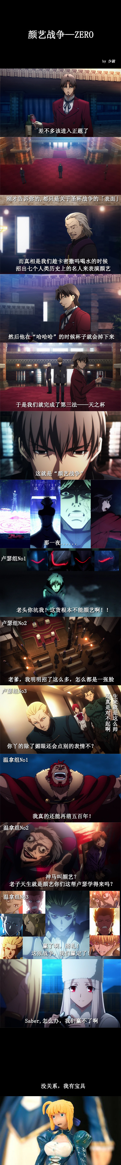Saber这次是男装丽人走百合路线啊,很好很好,卫宫切嗣和神父大人你们那么在意对方,干脆在一起吧。间桐家最恶心了,可怜的小樱,又要被虫玩,又要被老吸血鬼玩。