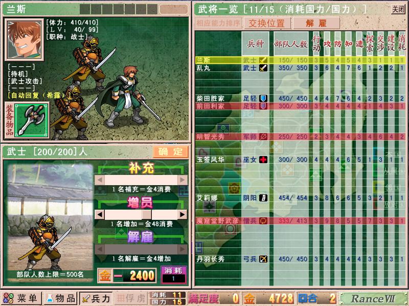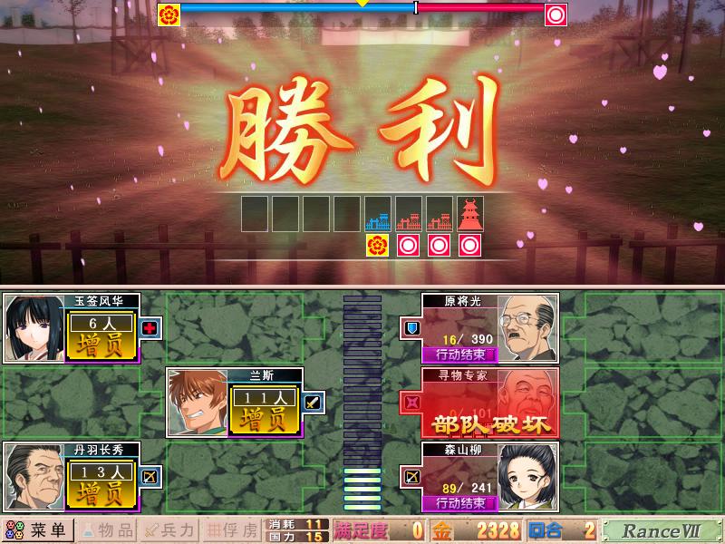 以前玩过日文版战兰,剧情神马通通浮云,二周目2星难度打的死去活来,最后就通了个兰线。于是发现有了汉化版后,决定重新体验一下剧情,因为有了经验,一周目打的顺风顺水,除了南条兰和小早川千奴两个妹子自爆了以外,基本没有什么遗憾。北条家和明石家的剧情都蛮煽情的,兰斯到最后也被成功洗白为纯爱GAL男主角
