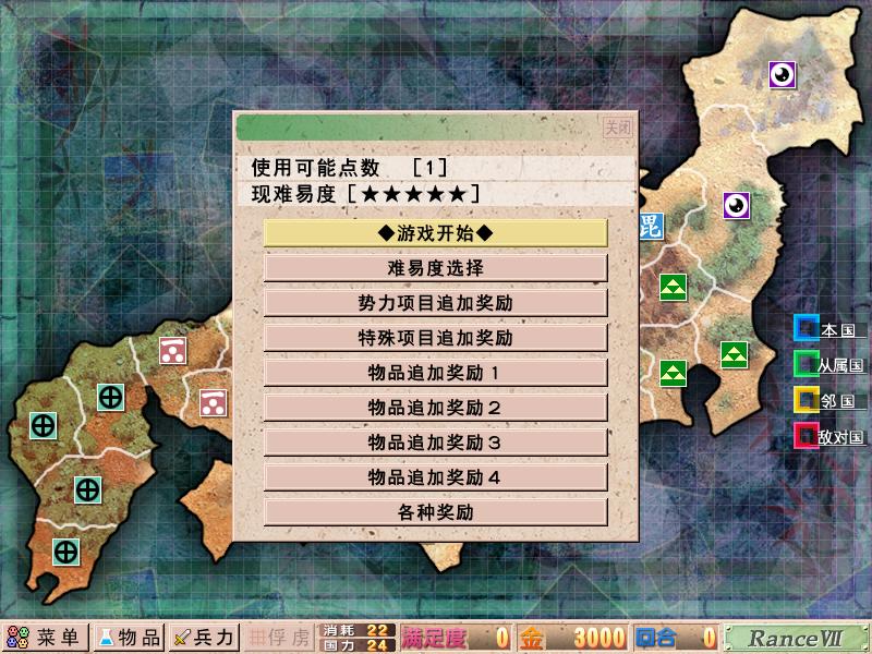 5星难度下,AI的攻势相当犀利,所以追加国力+9,这样可以尽可能的多招募一些人员。