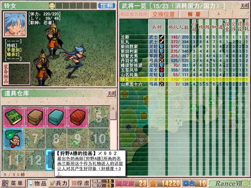 攻略总是要有目标的,除了参加活动的必要要求外,自己的个人目标是:多完成一些剧情,适当种一下田,享受一下SM敌人的快感,培养好主角兰斯(不能只是H300人的无用之辈),还有就是……最终得分要高于5分(好歹也是4周目了啊)。