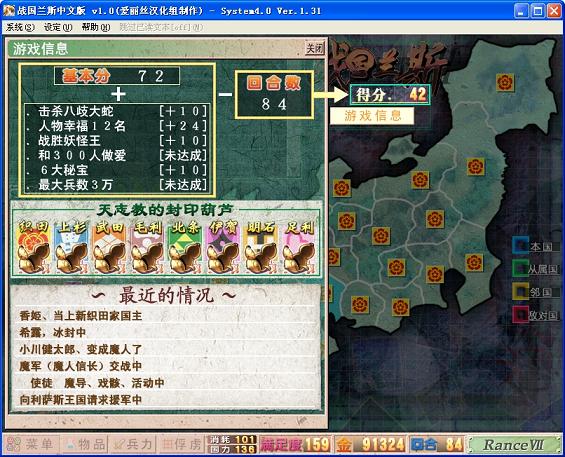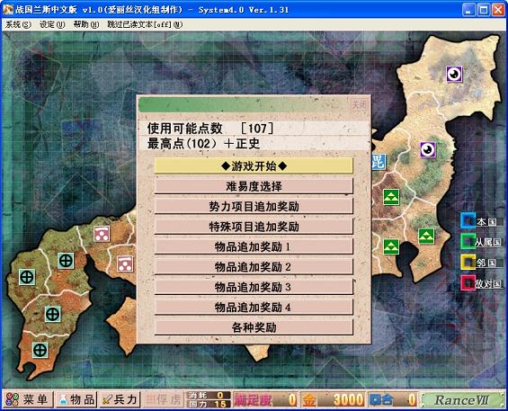 标题: 【战国兰斯】二周目正史线新手战报, 九十六回合通关,最终得107分