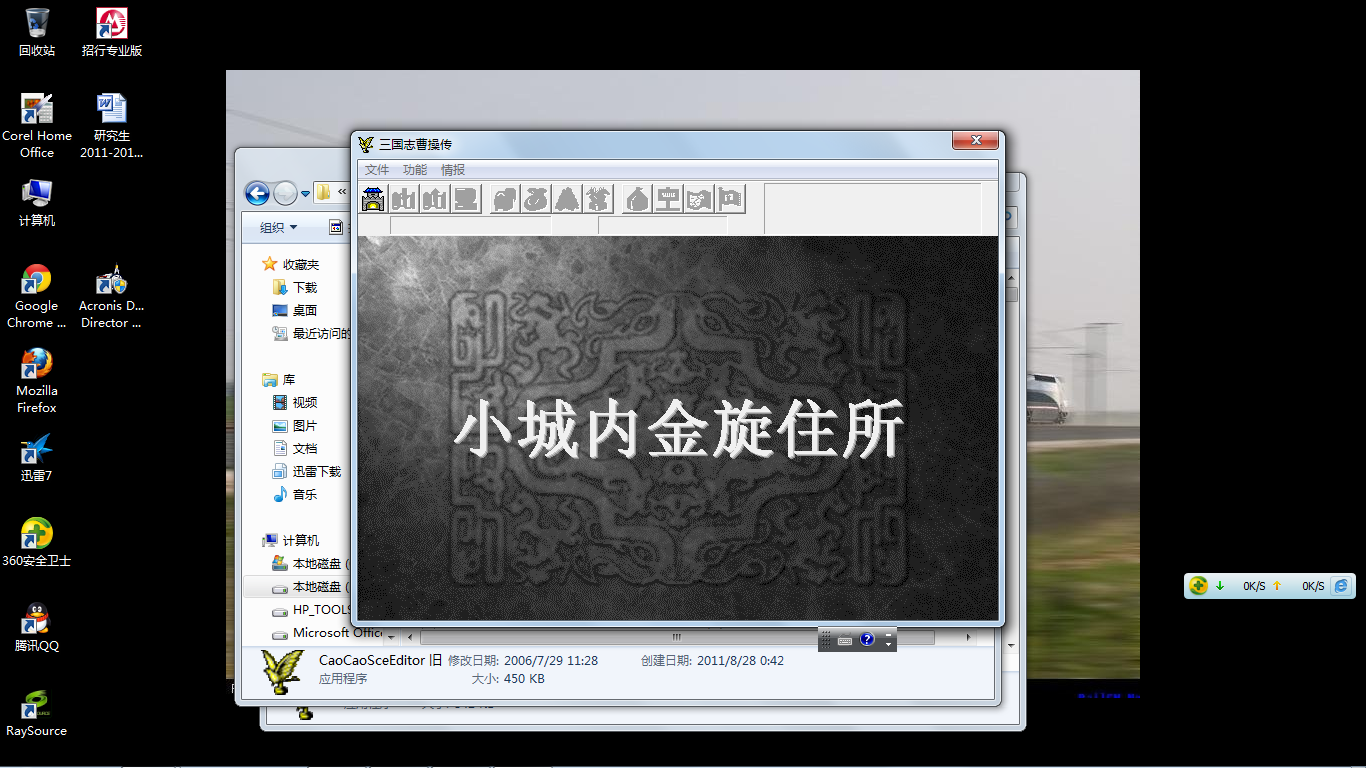 随后,我用叶落秋寒的曹操传修改器,修改IMSG文件中的战役名称,修改第59关为“汉津巡防战”,并保存。