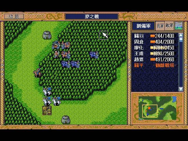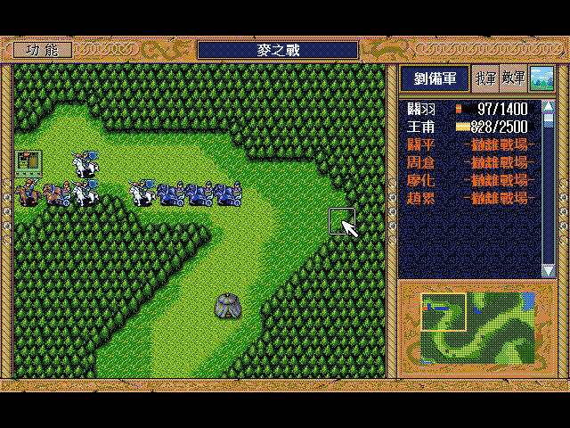 王甫走到左宝物库右2下1,赵累到王甫右2,廖化到王甫下2左1(陆逊不会图他的低智力放弃树林去草原)。