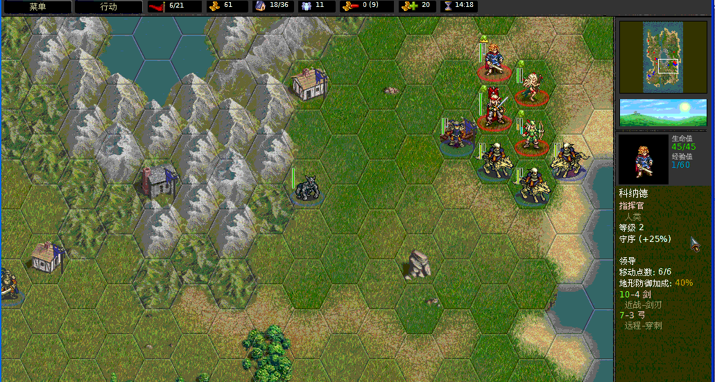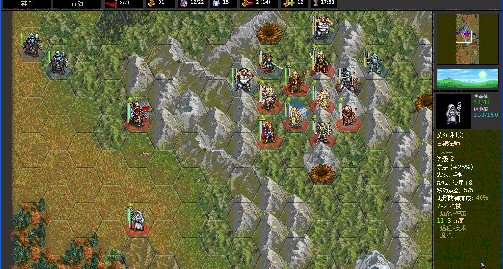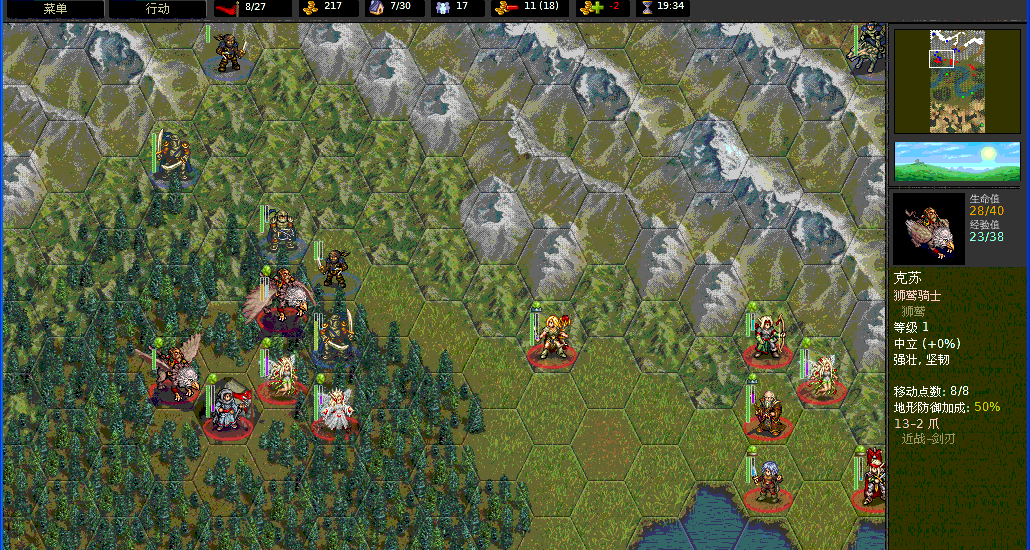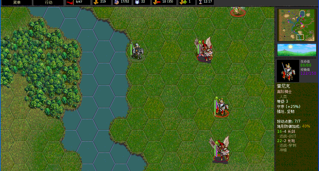 高阶骑士是HP最高、单次攻击杀伤力最大的兵种,两种攻击分别是:12×4的剑刃和17×2的穿刺(带冲锋特性)。看看这个数据就知道高阶骑士是多么的强悍。移动力7。