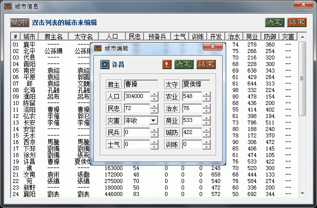 各个模块和界面都是参照三国志5威力加强版的编辑功能的,但比威力加强版能编辑的内容更多。