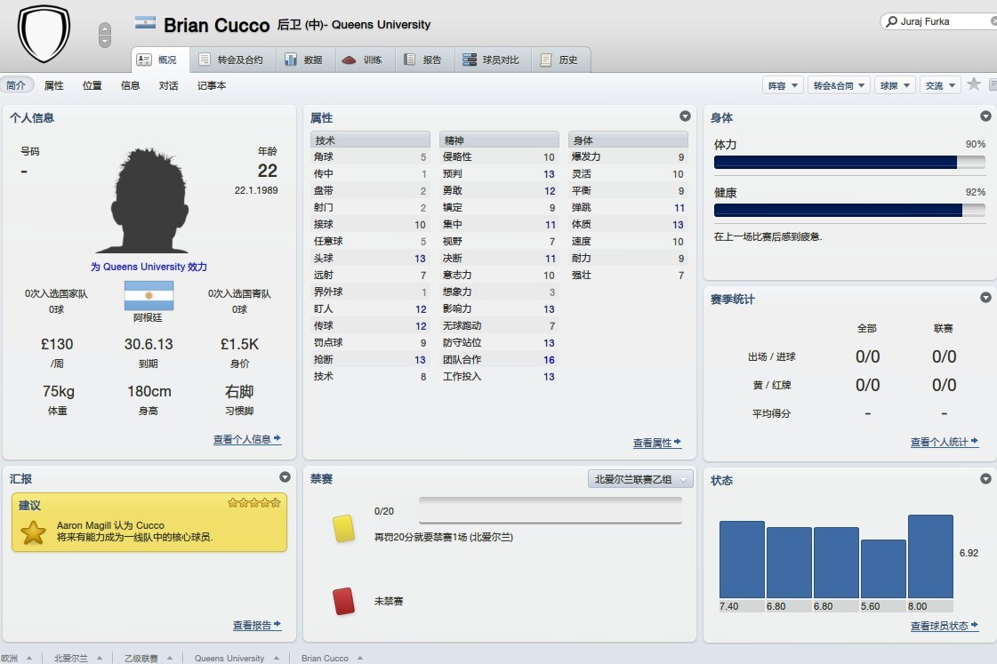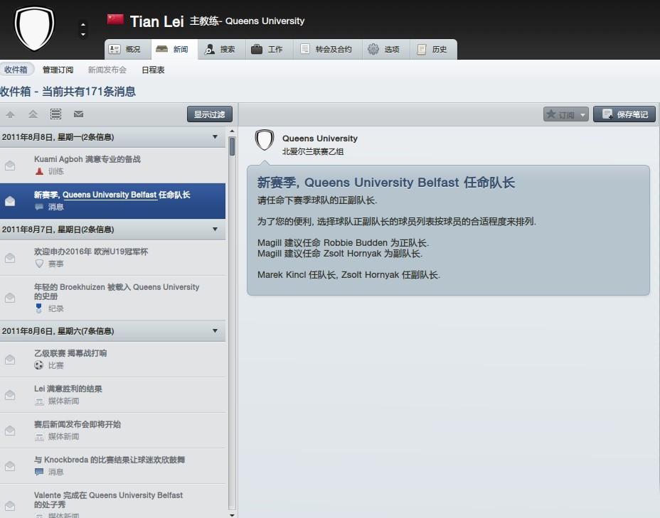 选的队是北爱尔兰乙级联赛的女王大学队,Queens University FC 官网是: