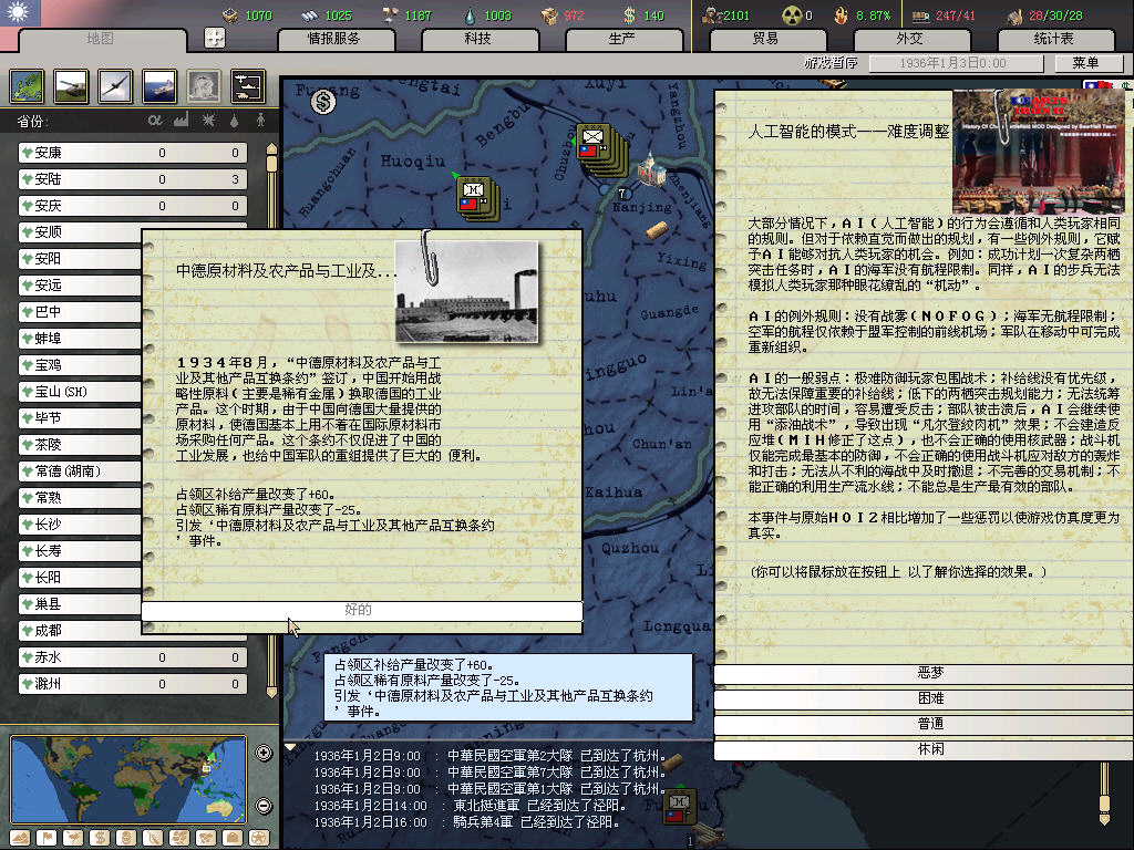 下列事件不发生:皖南事变,45经济危机与国府经济崩溃(不签白银协定可避免),特务统治(不建立军统中统,或者民主左翼小于5可避免,10%几率,43年1月,7天一判断)。离心离德的国府(不触发特务统治可避免)