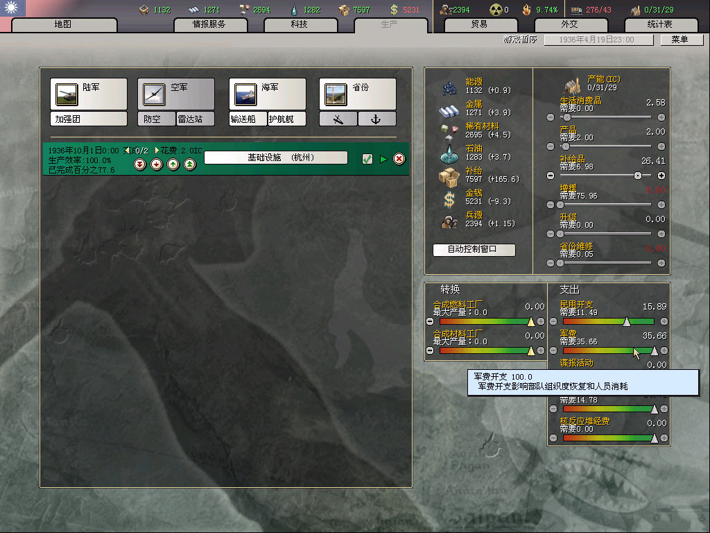 部队多了,先把ic临时全部向生产补给转移下,同时继续发放五成军费
